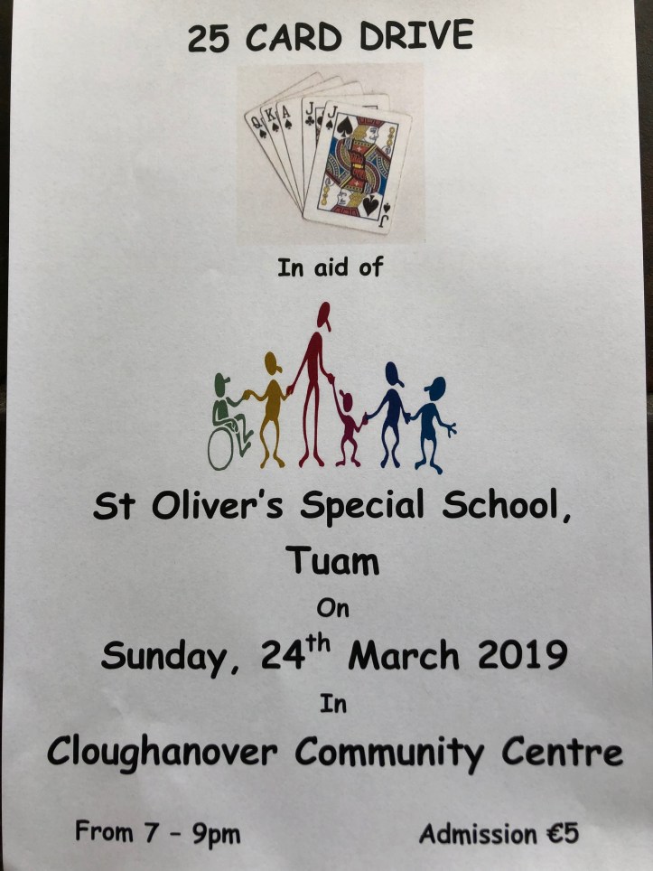 Presentation Primary School Tuam are hosting a Cake Sale on Friday, 16th March 2018 between 9am – 12noon and some of the proceeds are for St. Oliver’s Special School. We hope to purchase a new set of TEACCH Boxes with the money. All parents, family and friends of children in St. Oliver’s Special School are invited to attend.